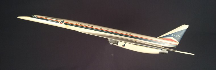 A full-scale wooden mock-up of the 2707 was constructed. It was envisioned to carry up to 300 passengers and cruise at around Mach 3-nearly three times the speed of sound. Unlike Concorde, the early design featured a variable-sweep (swing) wing, allowing efficient flight at both subsonic and supersonic speeds. However, this concept proved impractical and was later replaced by a fixed delta-wing design, similar in appearance to Concorde. Another shared feature was the distinctive droop nose, designed to improve pilot visibility during take-off and landing.