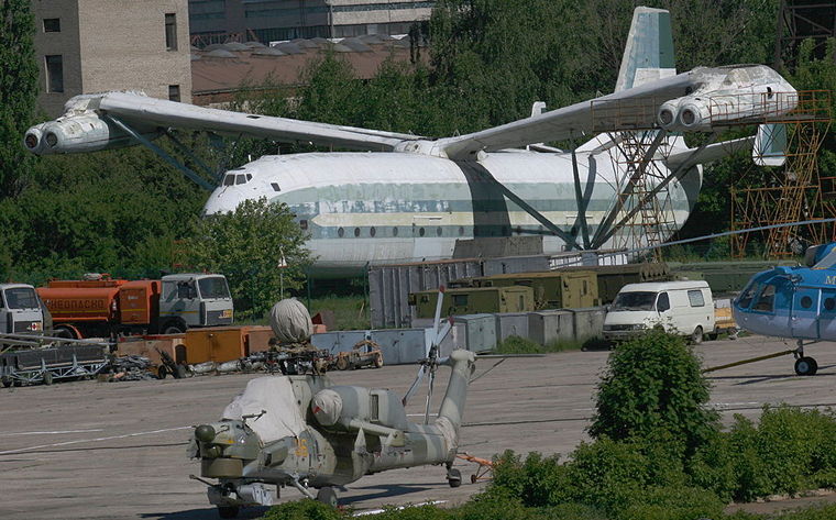 The power system and wings are mounted above the centre fuselage with interconnecting shafts ensuring synchronisation of the main rotors which overlap by about 3 m (9.8 ft). Drag and lift losses are reduced by the inverse taper wings with minimum chord in regions of strongest down-wash. Each power unit comprises two Soloviev D-25VF turbo-shaft engines mounted below the main gearboxes which each drive five-bladed 35 m (115 ft) diameter rotors and their synchronisation shafts which run from wing-tip to wing-tip.