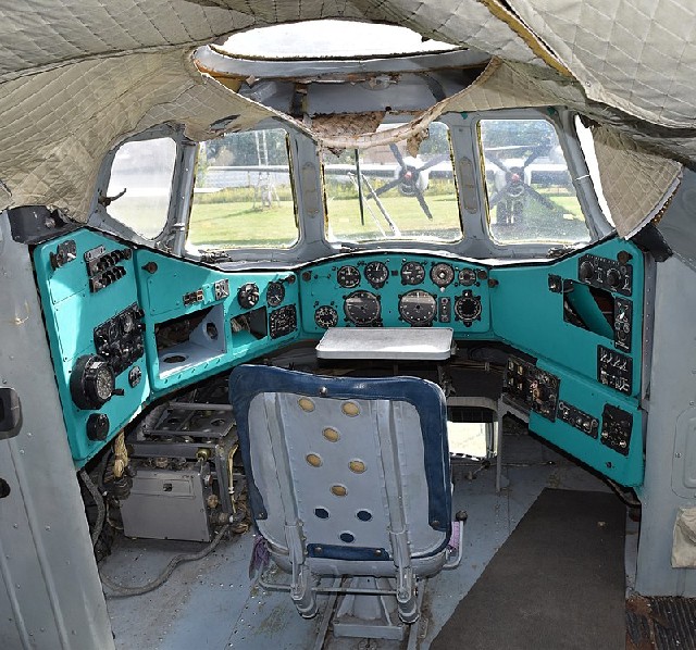 Construction of the V-12 first prototype, after exhaustive testing with test-rigs and mock-ups including a complete transmission system, began at Panki in 1965. The large fuselage accommodated the 28.15×4.4×4.4 m (92.4×14.4×14.4 ft) cabin and crew section in the extreme nose, housing pilot, co-pilot, flight engineer and electrical engineer in the lower cockpit, with the navigator and radio operator in the upper cockpit.
