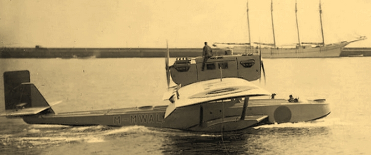 The Plus Ultra in Las Palmas. In the cockpit, you can see pilot Ramón Franco and, tending to the engines, mechanic Pablo Rada. With a double-finned hydrofoil configuration, the Dornier J Wal was constructed entirely of metal and had two engines in tandem. It was equipped with side floats that increased its stability on the water and carried a crew of up to five people.